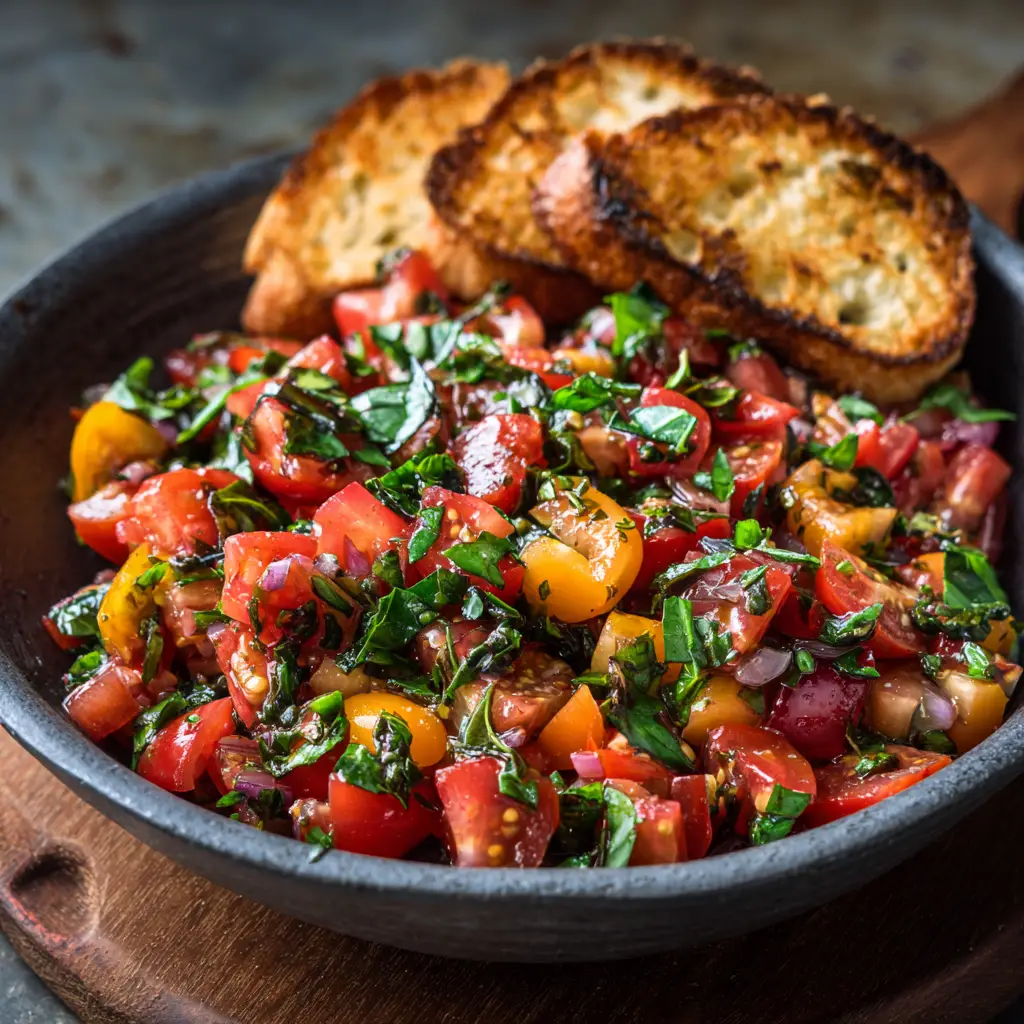 Bruschetta salad celebrates simplicity and freshness in every forkful. The mix of tomatoes, basil, mozzarella, and toasted bread soaked in olive oil and vinegar feels comforting and indulgent at once. It’s a dish that proves great flavor doesn’t require complex cooking. Whether for a quick lunch or a family dinner, this salad always delivers that perfect balance of taste and texture, turning everyday ingredients into a meal that feels special every time.